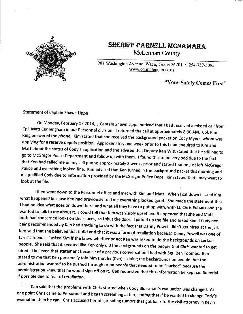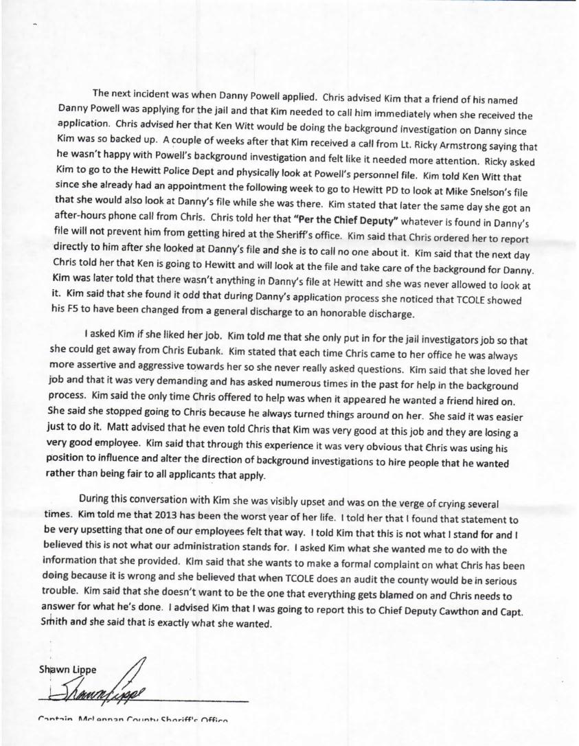 I have volumes of anguished papers and anonymous letters from inside the Sheriff’s department, seems Cody Blossman, Chris Eubanks, Sherre’s friend, and others are “favorites” and Ole Par plays favorites, yes, he does. They are not happy, the public is not happy, wonder if a local BANK is happy, seems Par is bringing a lot of attention a lot of ways from just plain SLOPPY corruption. Here is one of many, enjoy.