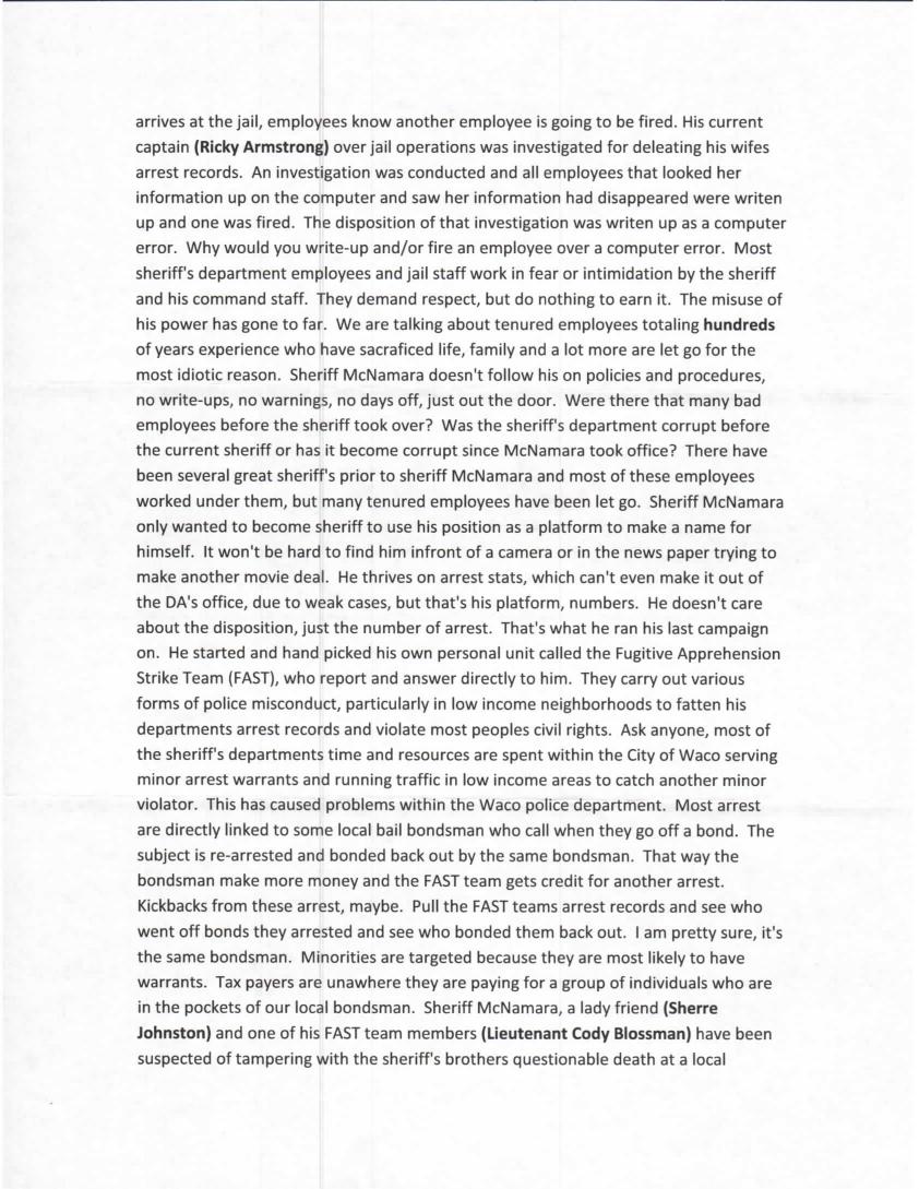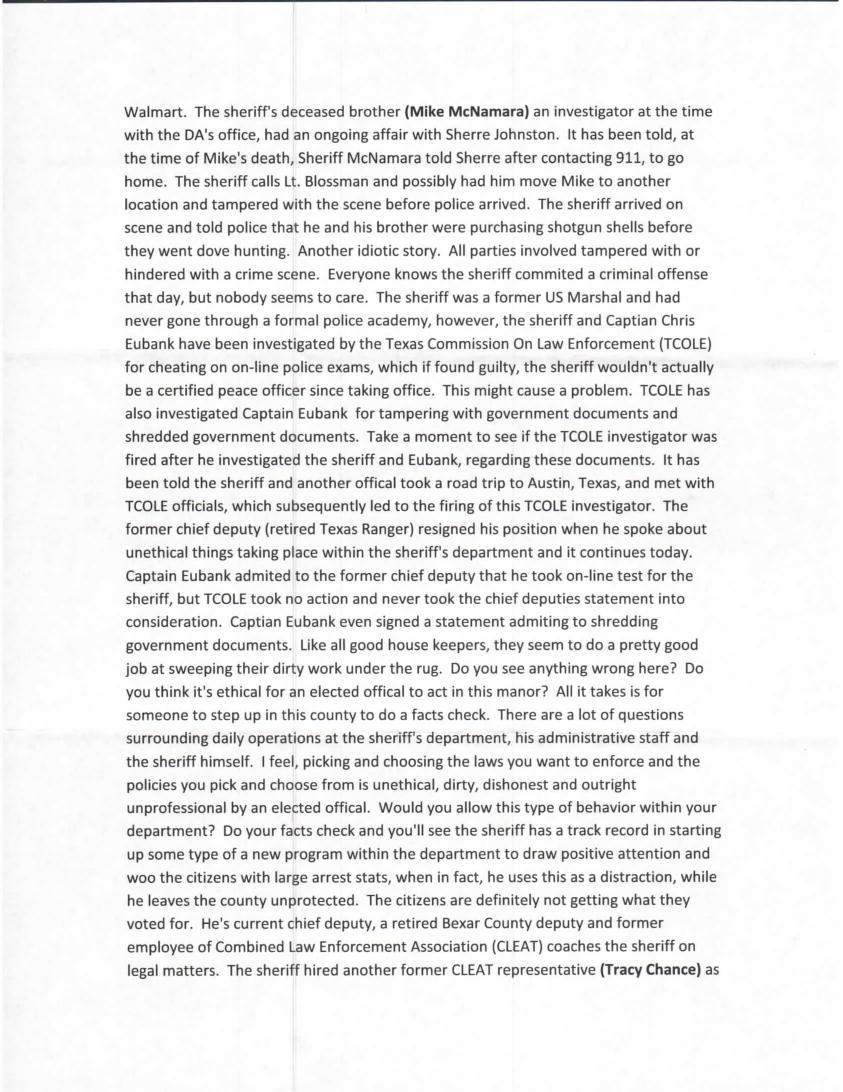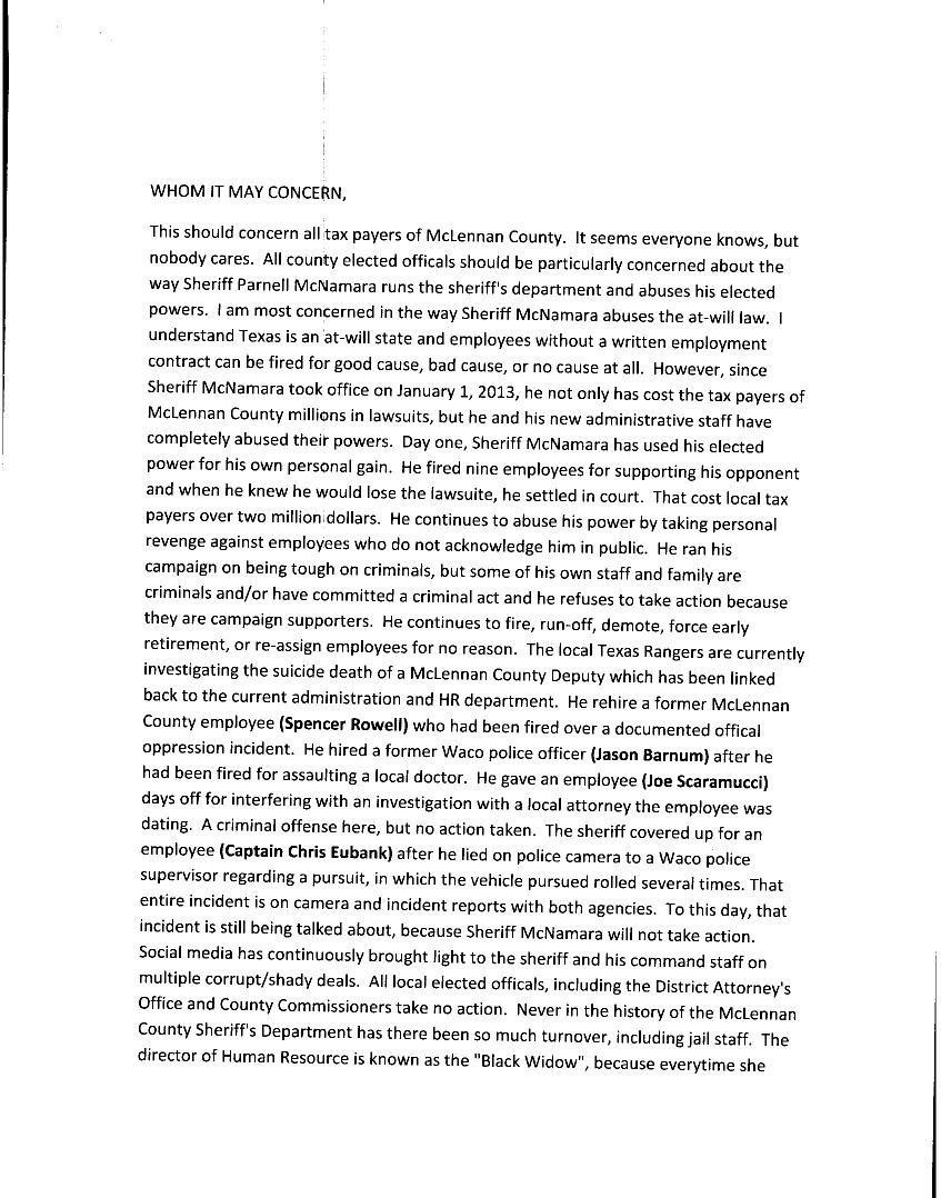 Parnell McNamara’s people are miserable and tired of the suck ups and the favorites, they are also tired of others getting DWI’s and nothing happens.